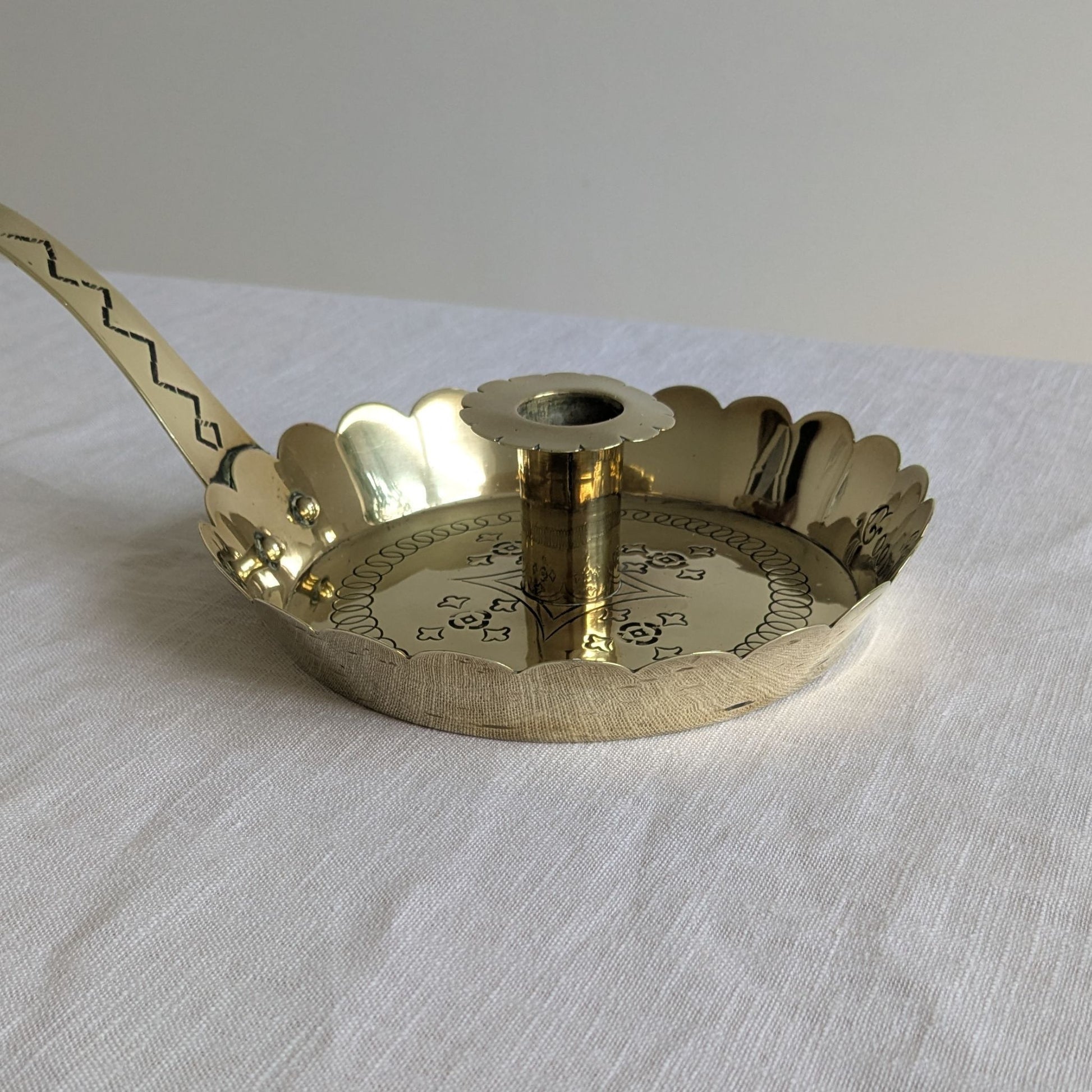 Antique brass chamberstick.