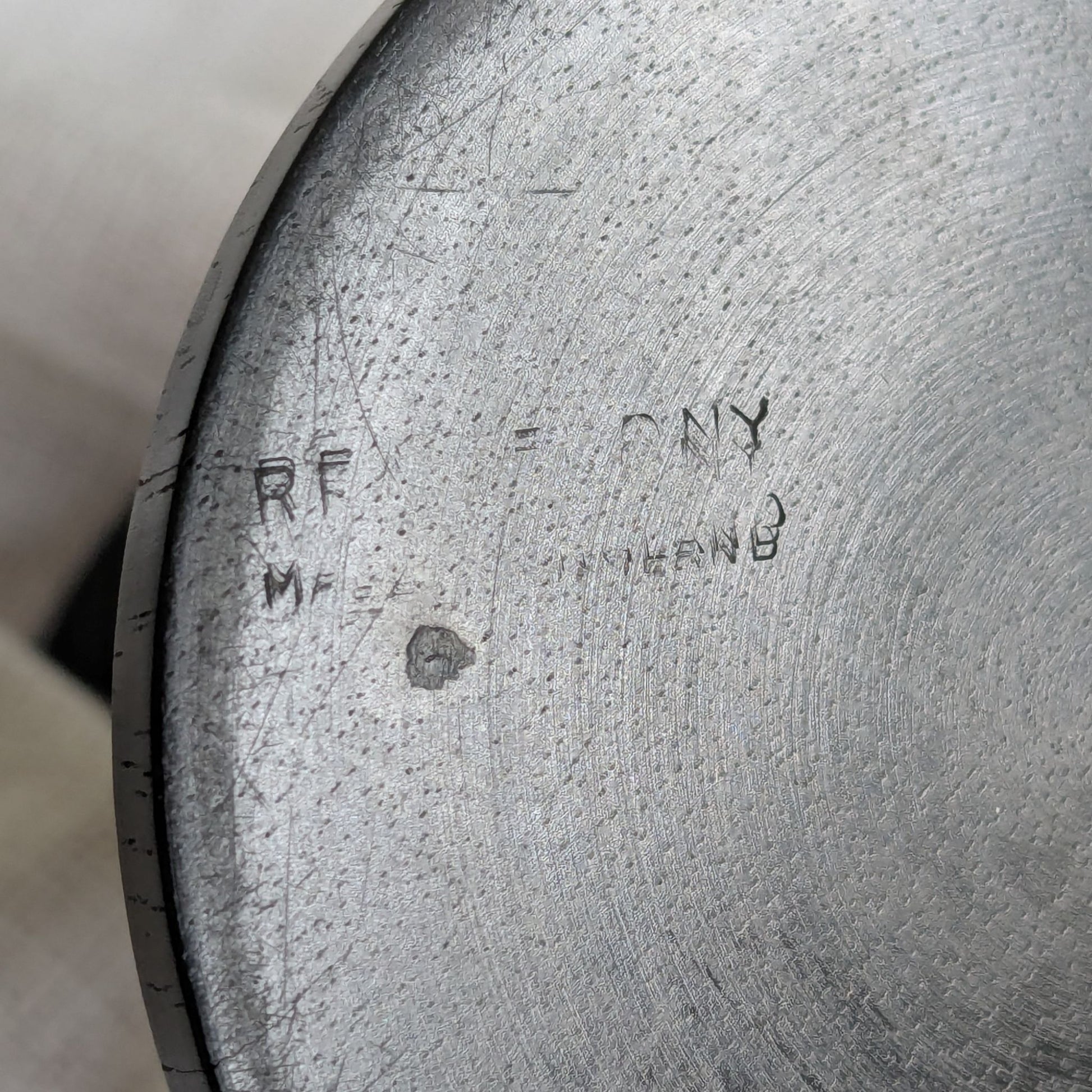 Smudged etched description to one base with the word 'ebony' and possibly 'made in England'.