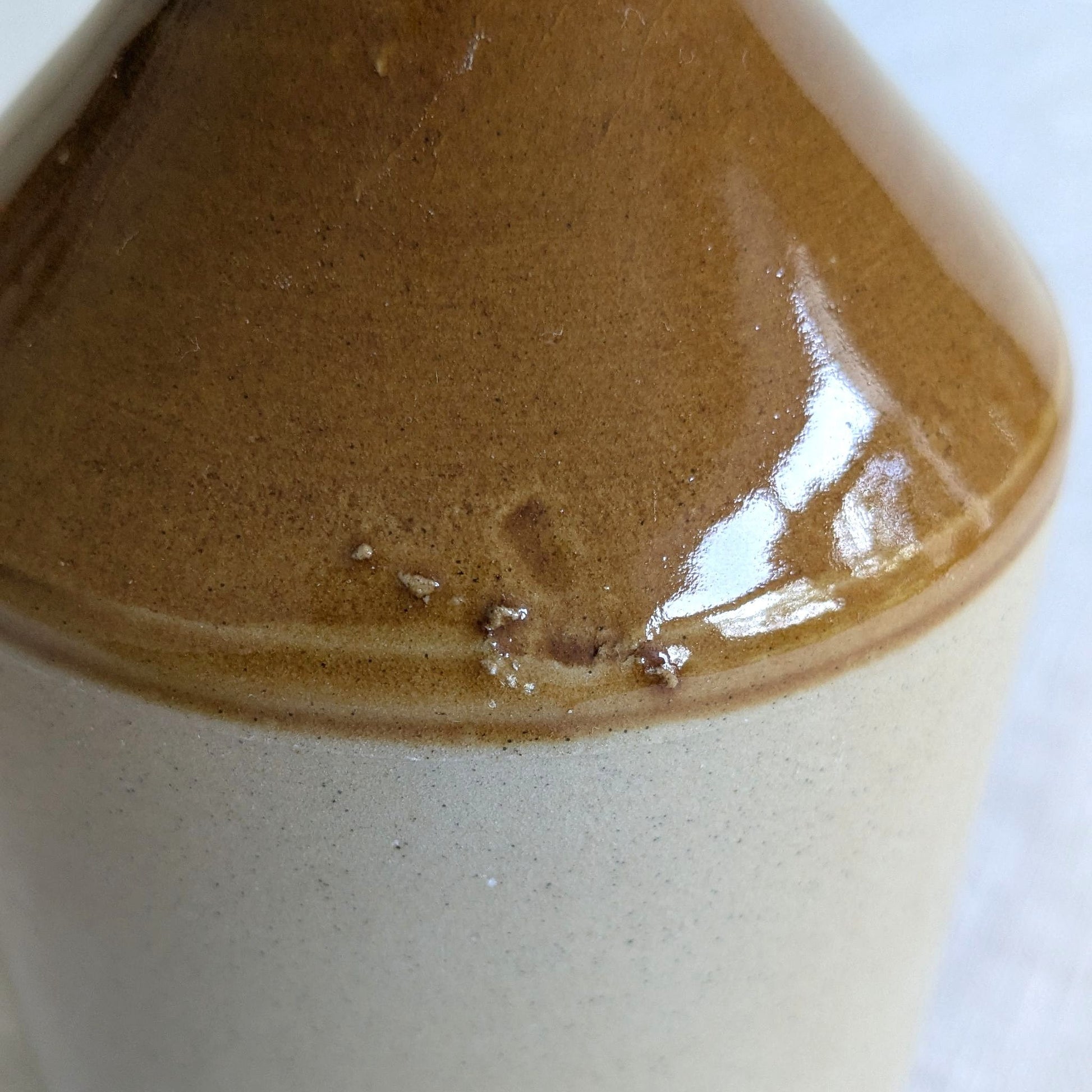Robust and chunky antique flagon that likely once stored beer, wine or vinegar.