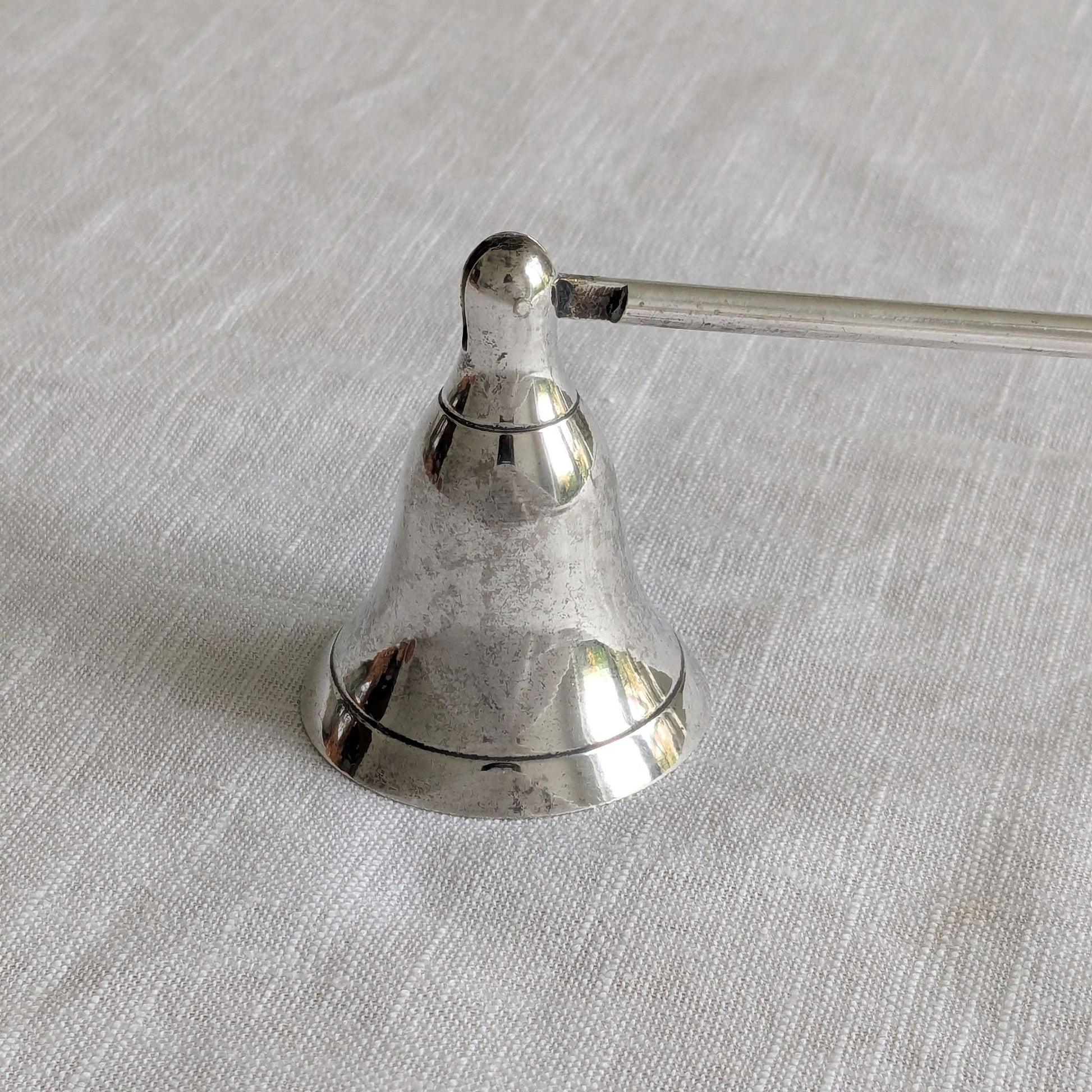 Formed in silver-coloured metal with a hinged bell-shaped extinguisher.