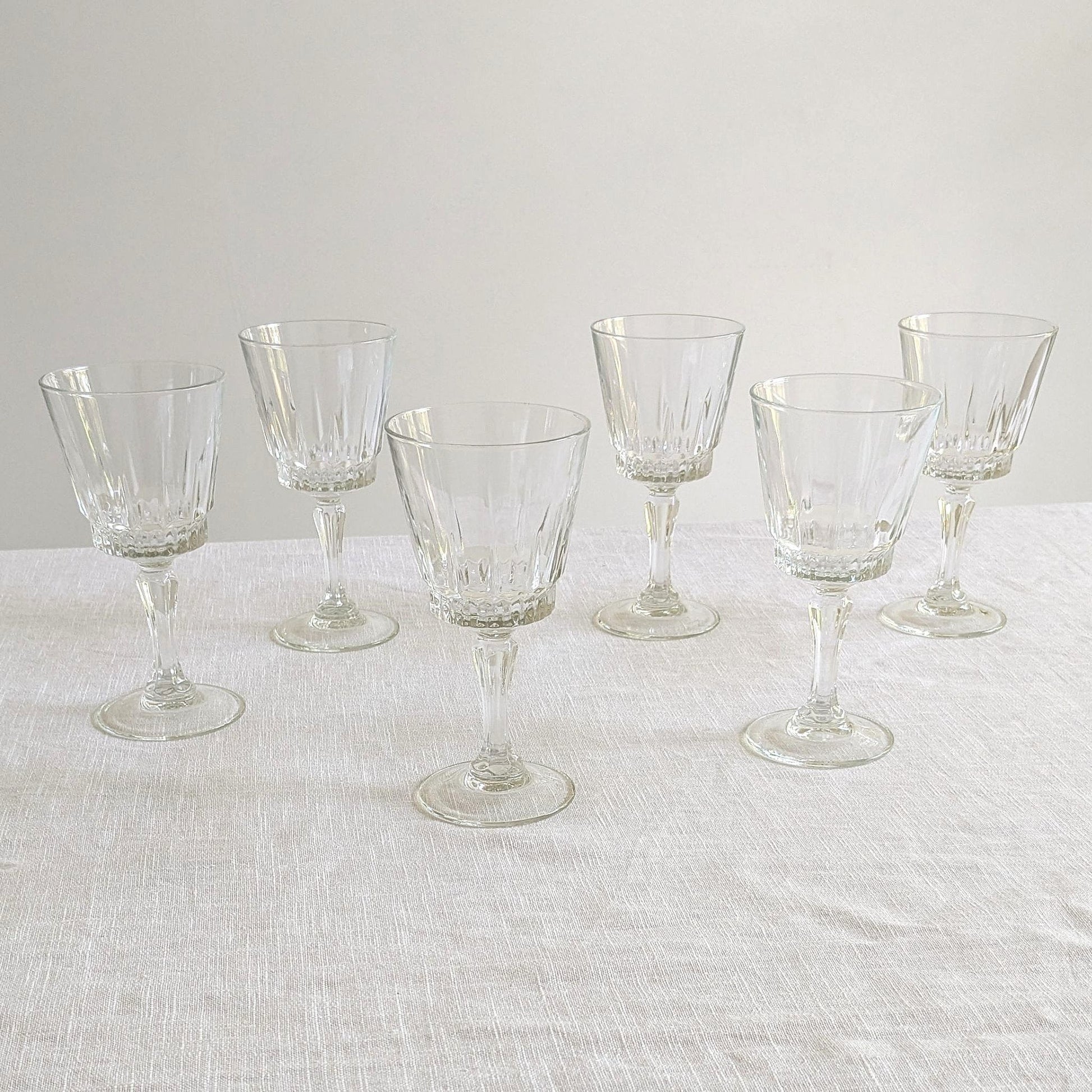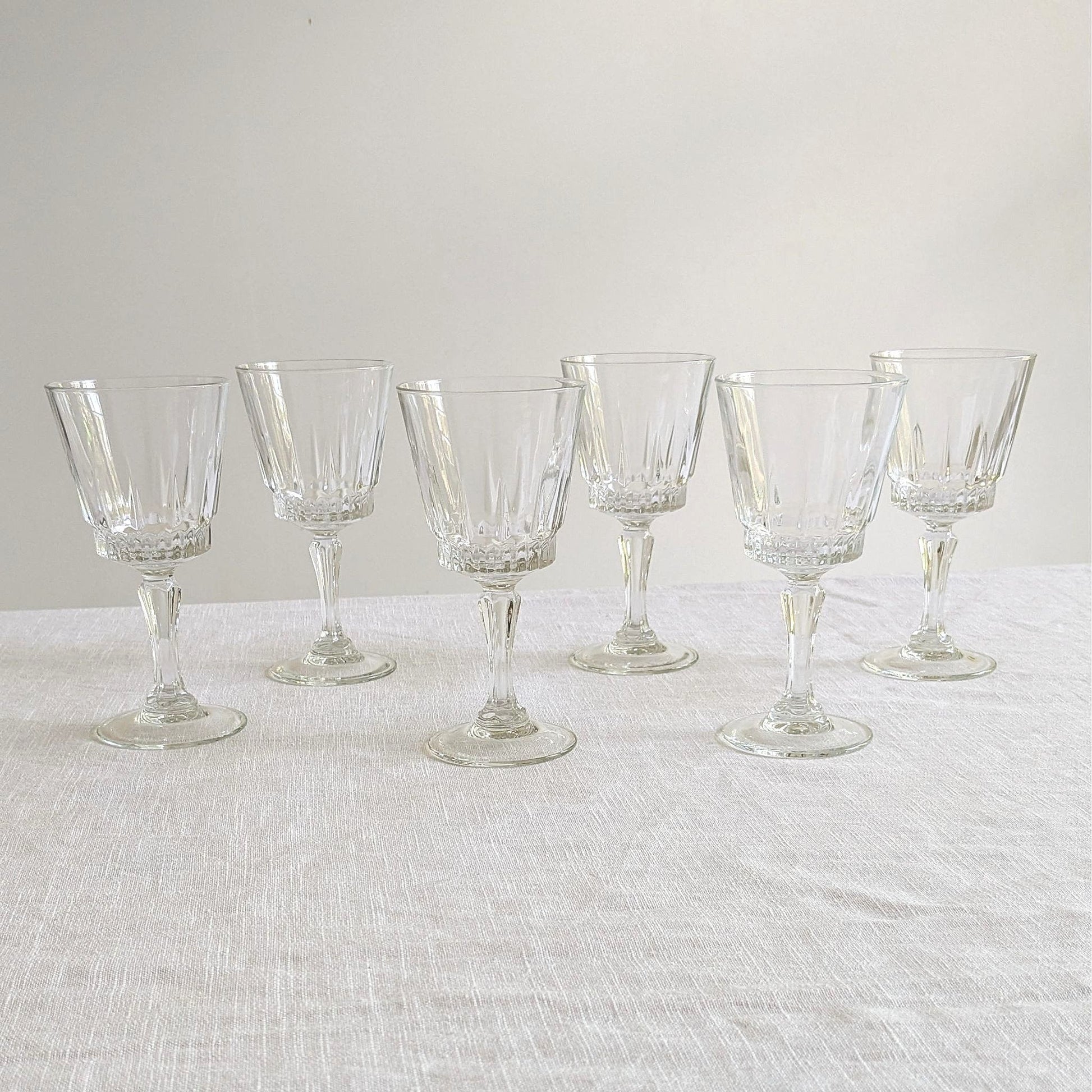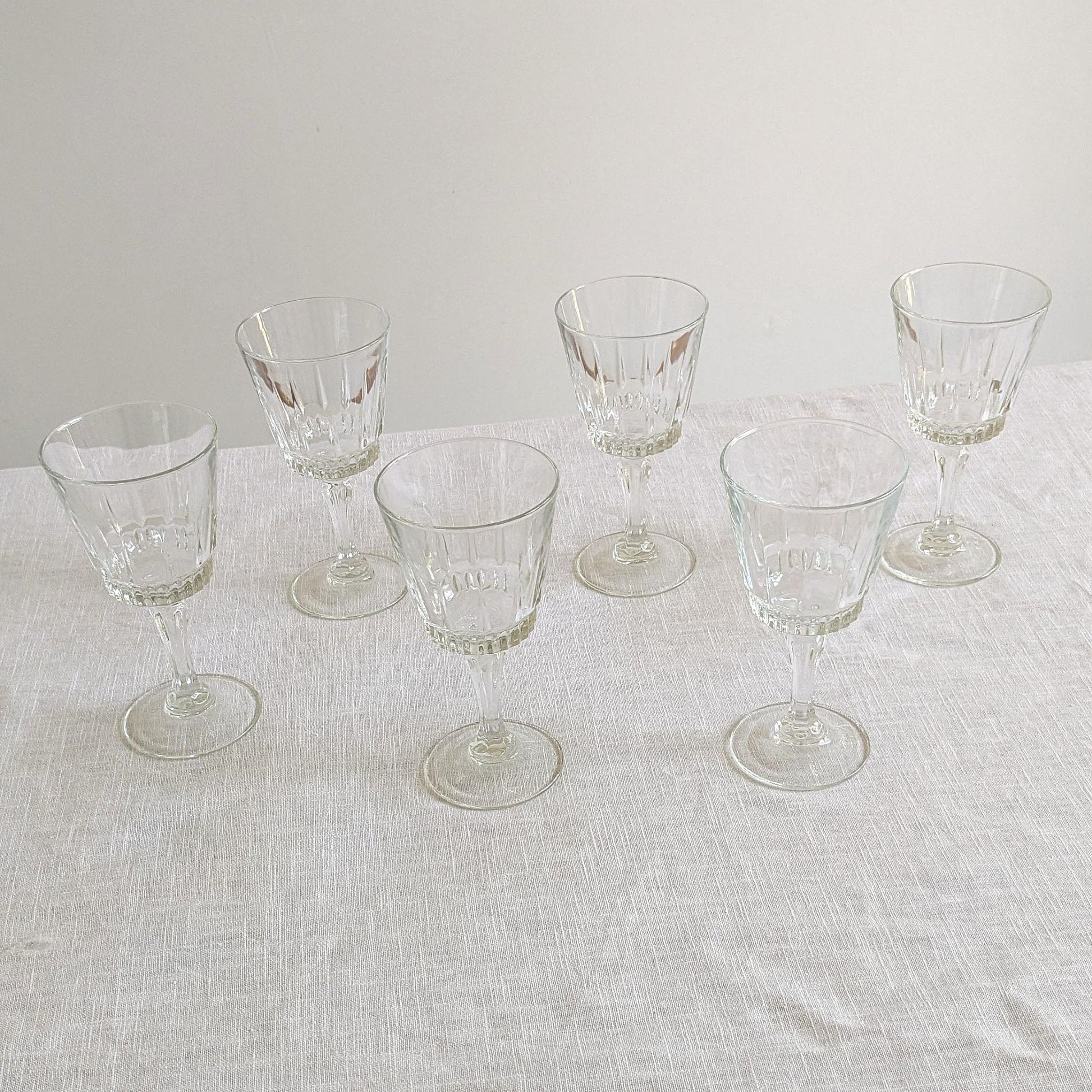 Excellent vintage condition with light scratches and very tiny nibbles. This style of glass from Luminarc can also be found in a larger size, this is the small-sized version of the design.