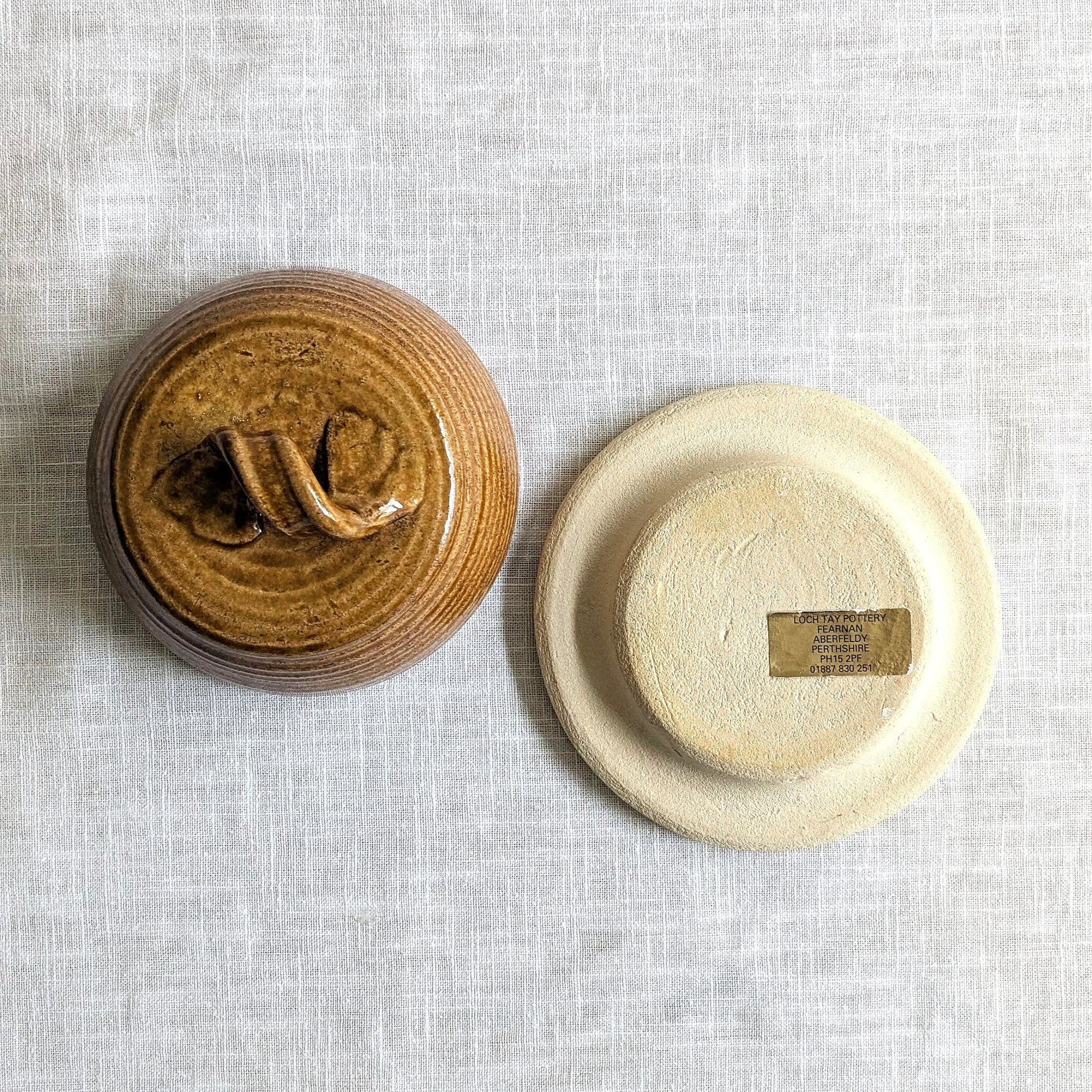 Made by Loch Tay Pottery of Perthshire, Scotland with a makers sticker to the base of the dome.