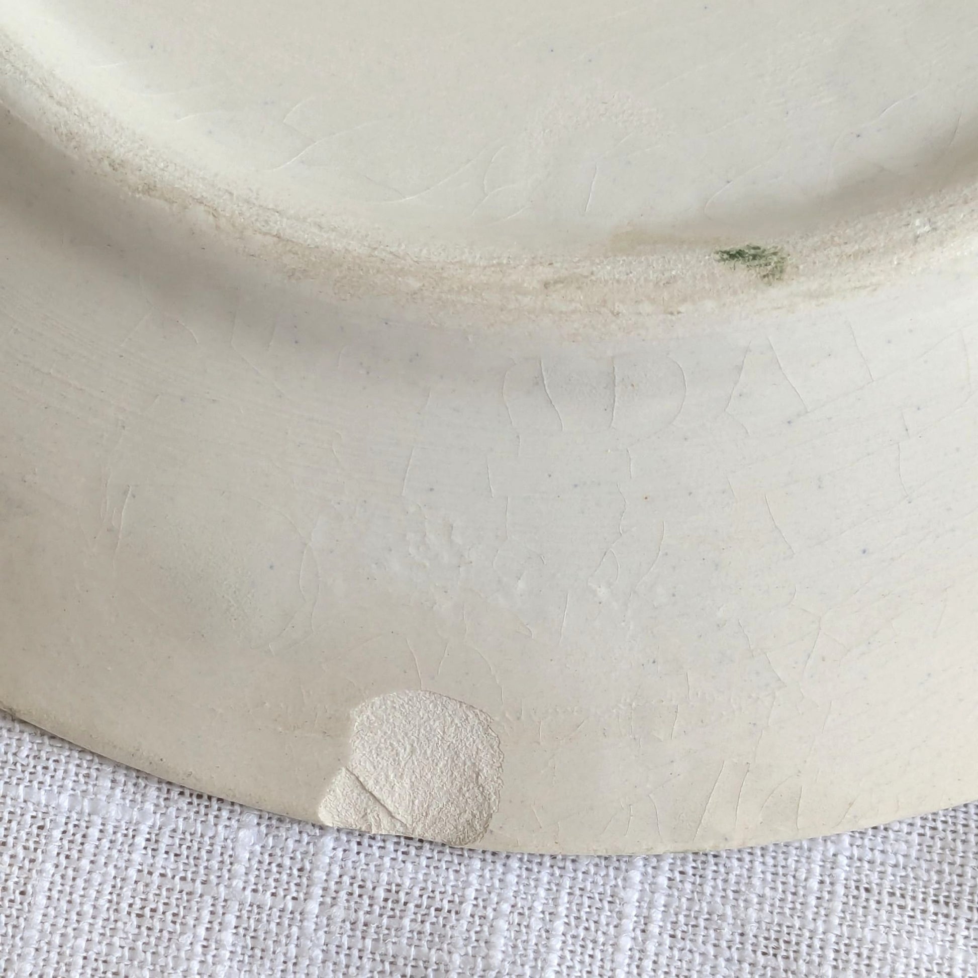 Rustic vintage condition with crazing and a chip to the reverse (not visible when displayed). No hanging holes to the reverse so a plate disc will be required to display.
