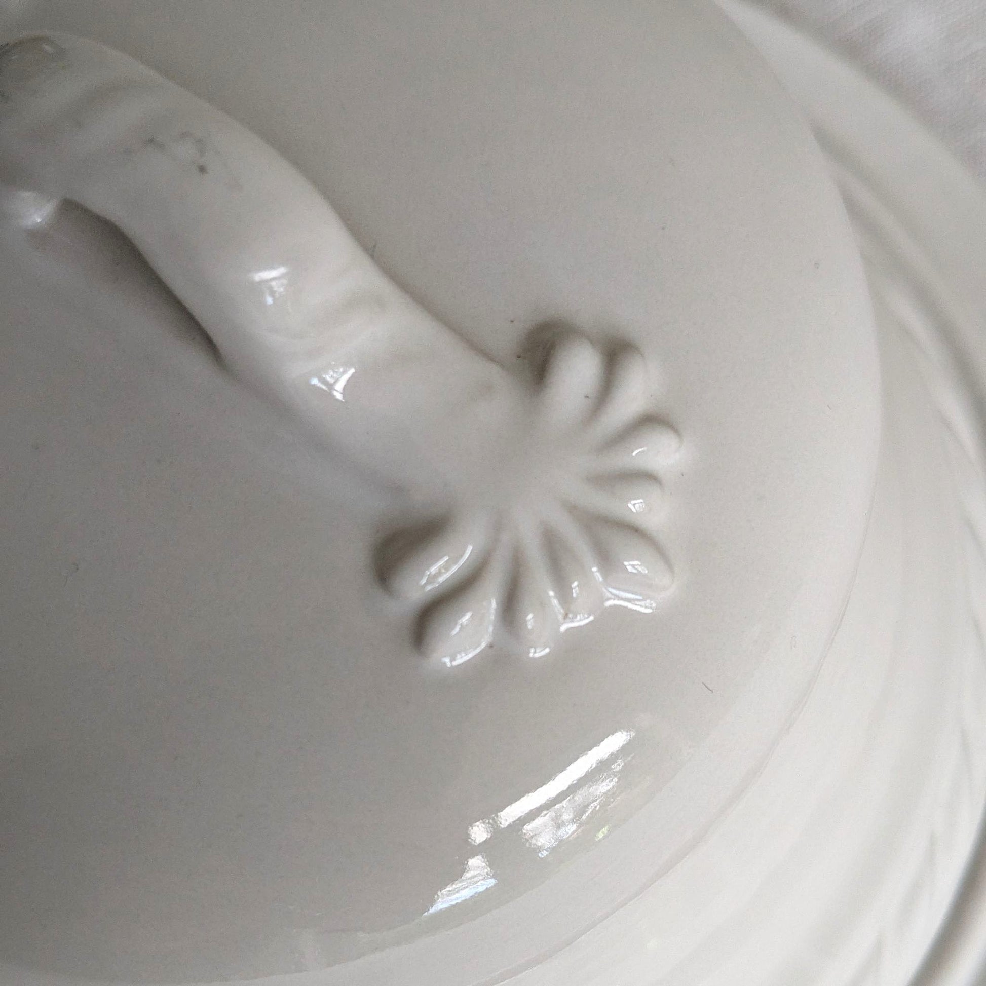 White stoneware cheese keeper or butter cloche and matching plate with a glossy white glaze.